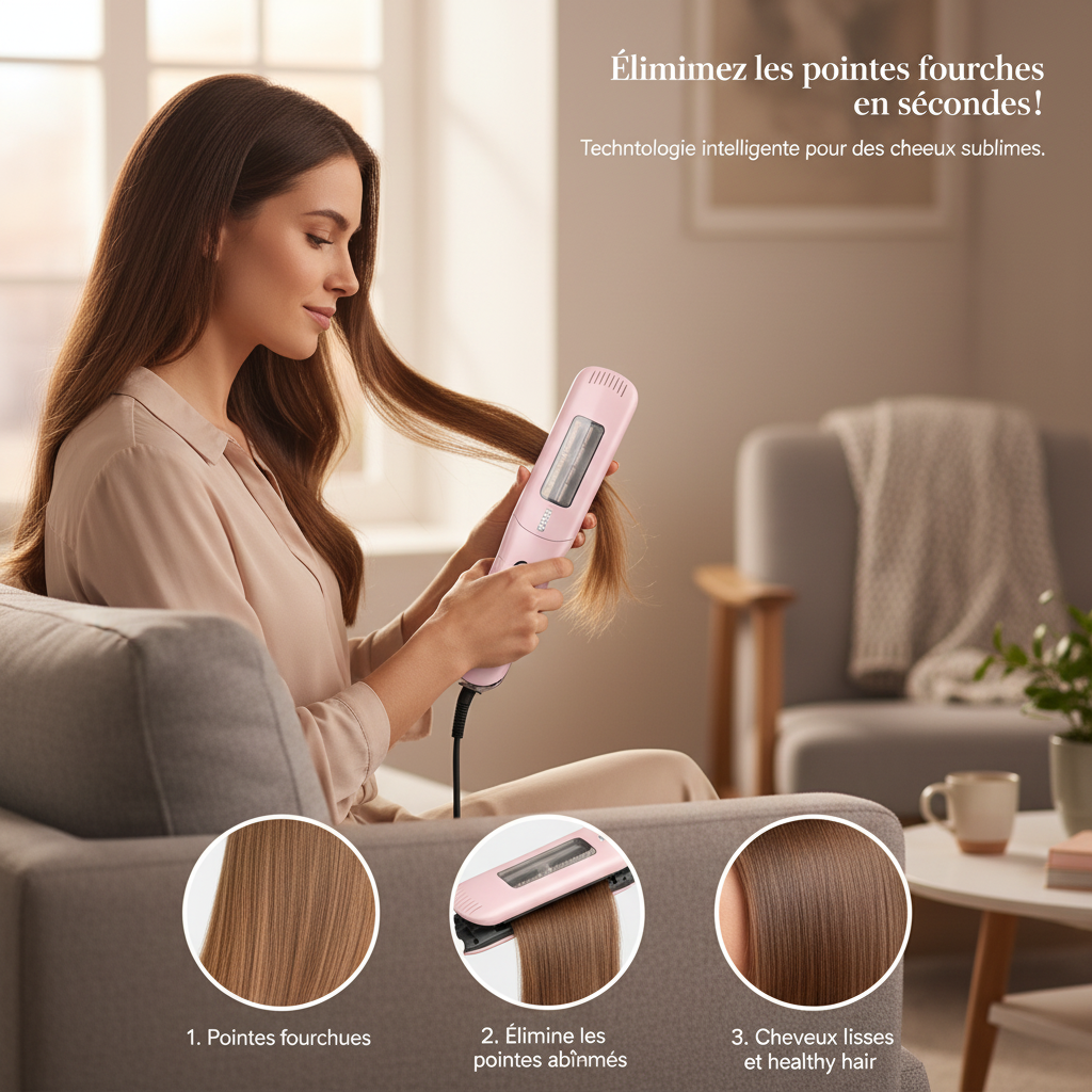 "Fini les fourches disgracieuses. Cheveux doux et réparés."